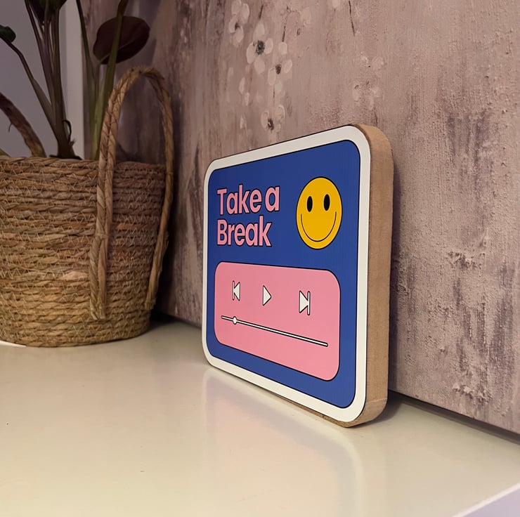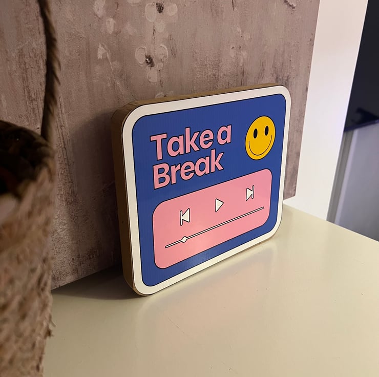 Pops of colour and motivation to any space with this handmade wooden plaque featuring the bold quote “Take a Break.” Designed in a fun retro style, it’s perfect for office decor, bedrooms, dorms, or as a gift for someone chasing their dreams.