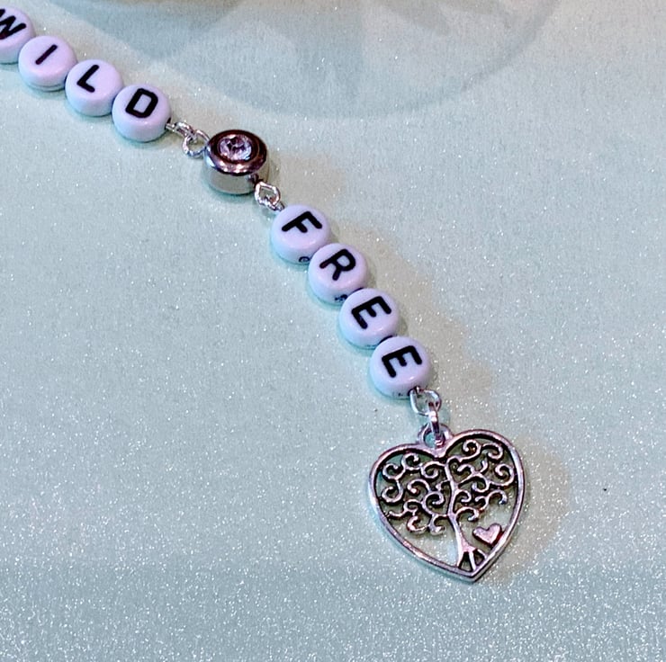 The phone charm features a beautiful tree of life heart and simulated diamond