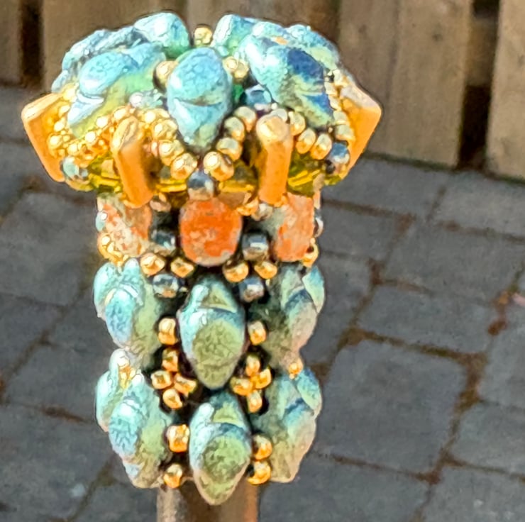 Jazz up your writing with this bejewelled pencil topper. Beaded with a variety of teal and gold beads comes attached to a jewel topped pencil. It is attached with double sided tape but can be gently twisted off to attach to another pencil when this one runs out or you fancy a change.