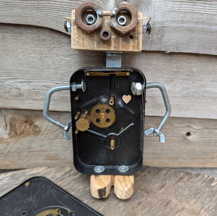 I collect other people's junk! I like to just see what evolves from it - sometimes a whole day in the workshop brings nothing....but one day a WonkyBot came out, so I decided to start a little clan of them.