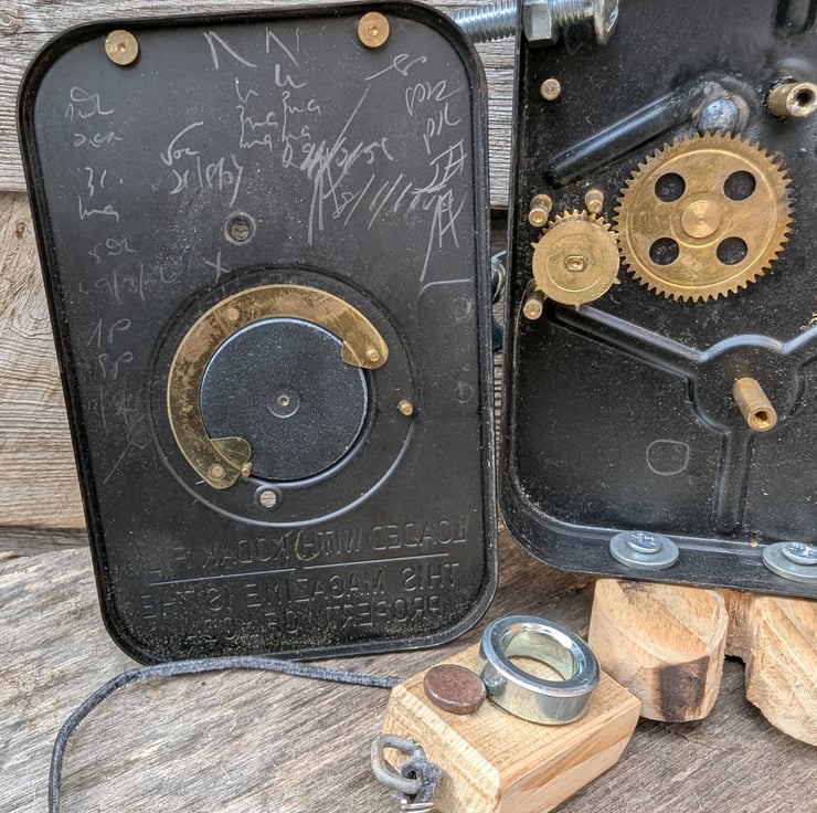 I have a couple of surprises inside. Along with my little heart, I also have some original gubbins from when my body was a film tin. An extra special surprise is the old hand written notes inside my lid. I'm pretty fascinating really, despite my wonky title.