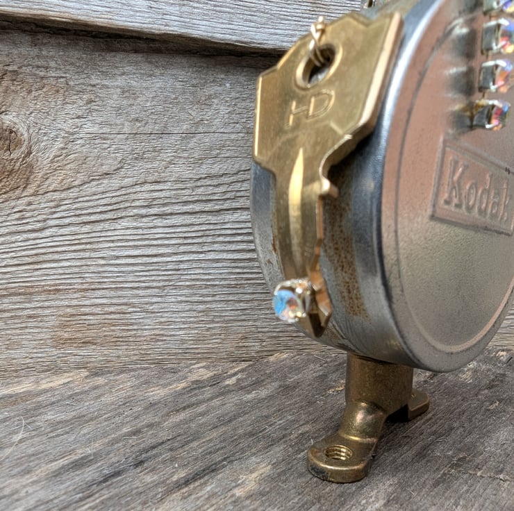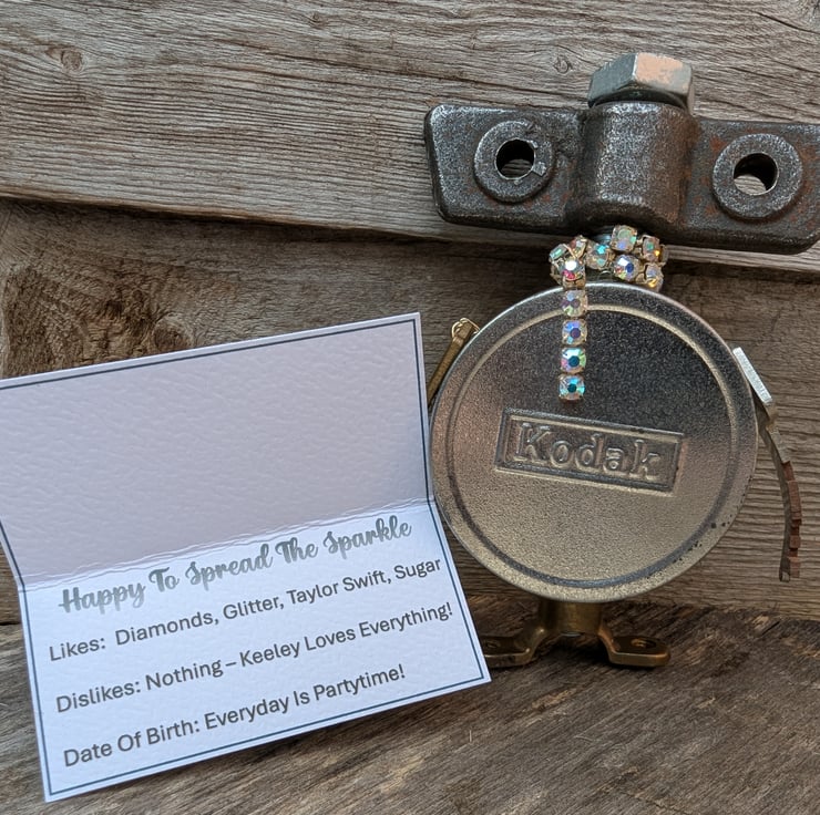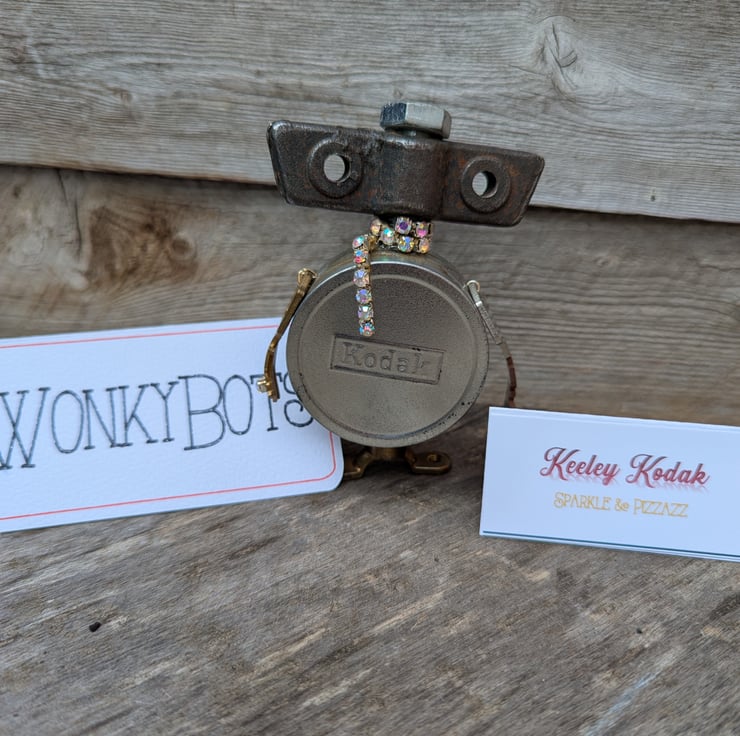 I'm made from a nice silver film tin that you can open up. I'm only little but you can keep your tiny treasures inside & I'll look after them for you. I have key arms which makes me pretty unique I guess.