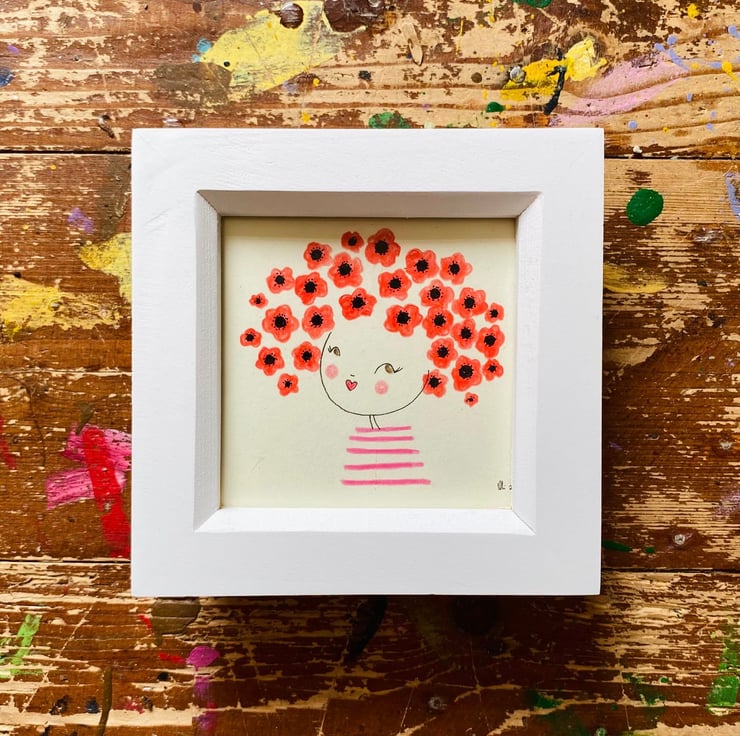 Measuring 7.5 x 7.5 cm and set in a small, rustic, white frame measuring 9 x 9 cm, this gorgeous coloured pencil illustration would make a perfect gift!