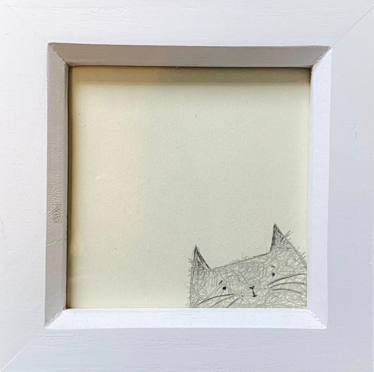 Measuring 7.5 x 7.5 cm and set in a small, rustic, white frame measuring 9 x 9 cm, this cute pencil illustration would make a perfect gift for a cat lover!!