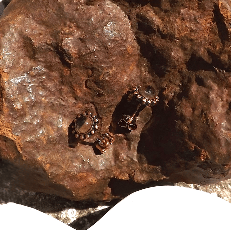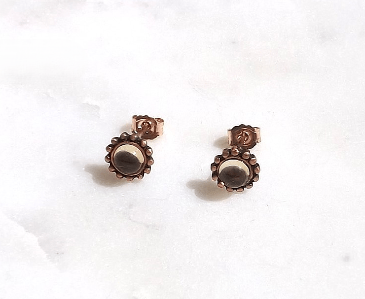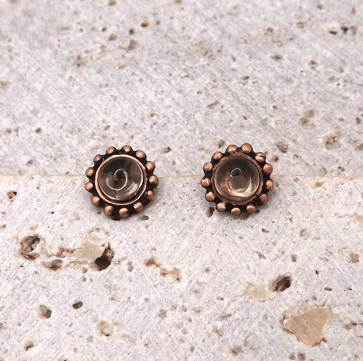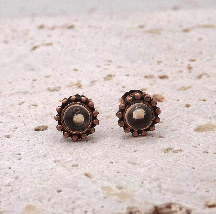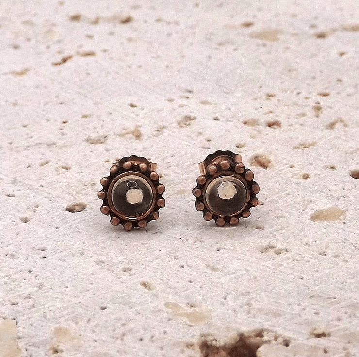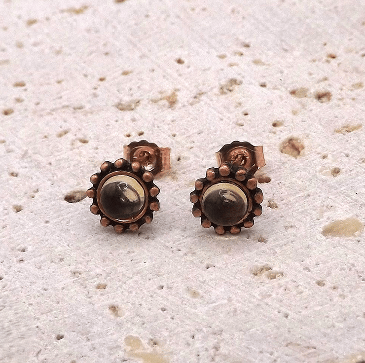 Recycled Copper Studded Earrings with 4mm Citrine Gemstones.