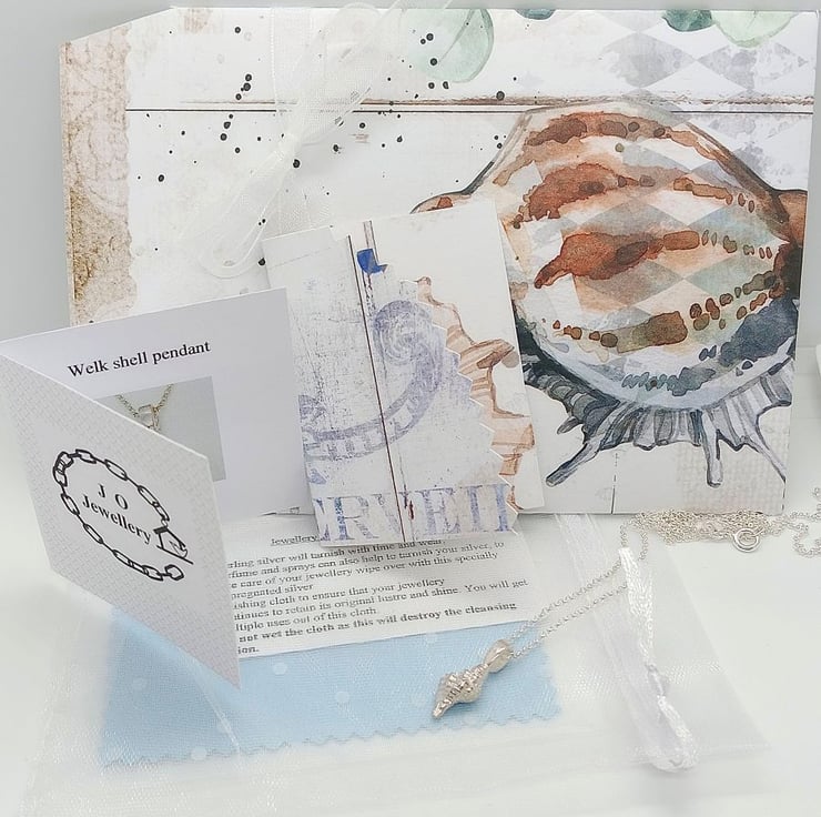 The necklace will arrive in a gift pouch in one of my shore to sea gift envelopes with ribbon and gift tag, also includes product card and silver polishing cloth.