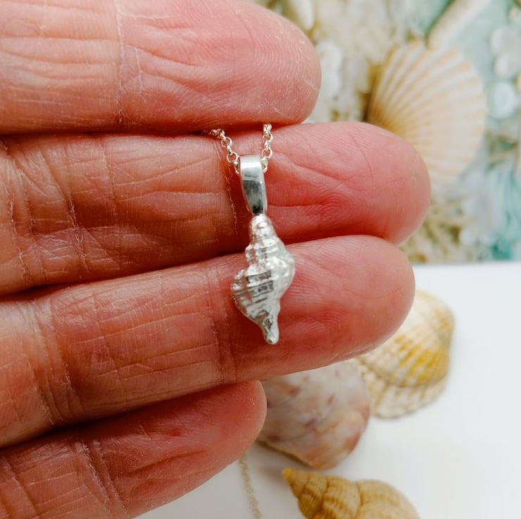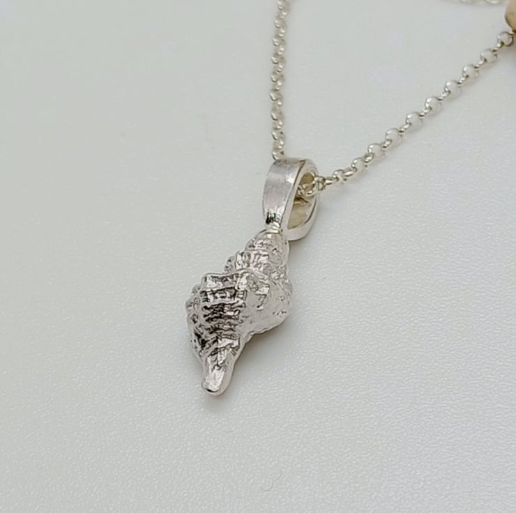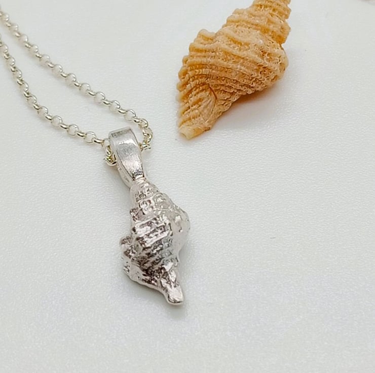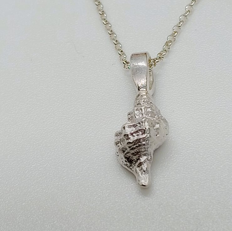 Solid sterling silver welk shell pendant necklace, fully hallmarked.