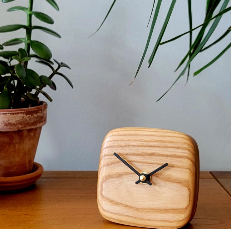 My Desk/Mantel Clocks are handmade from a solid piece of Oak and smooth face.