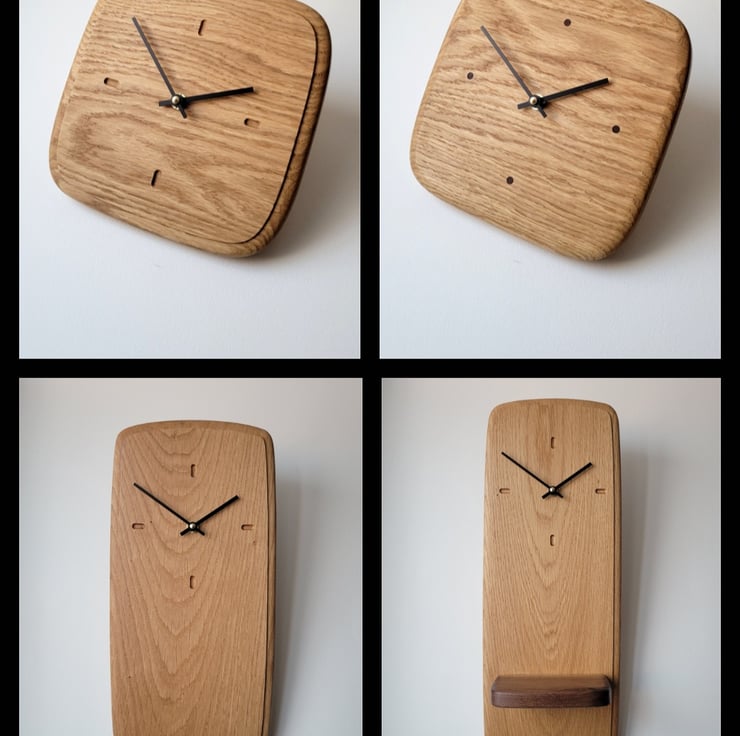 My Wall Clock "Small" is handmade from a solid piece of Oak with "dash" indicators, marking 12, 3, 6 & 9 o'clock.