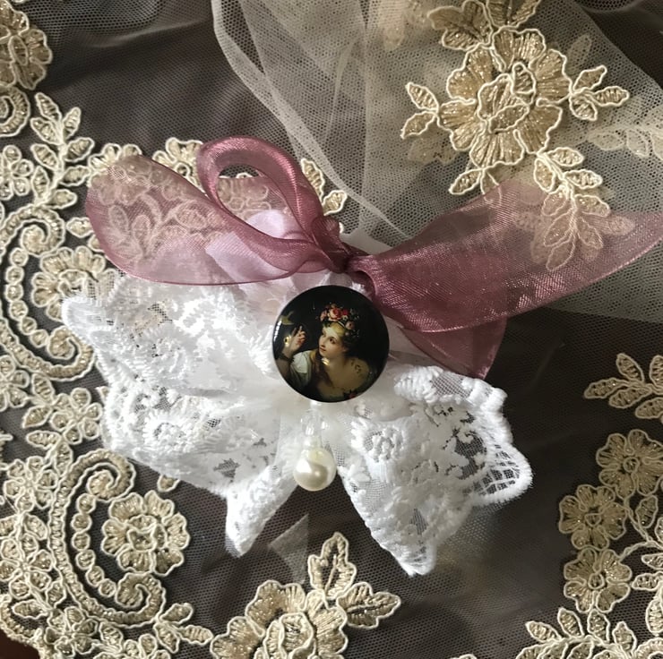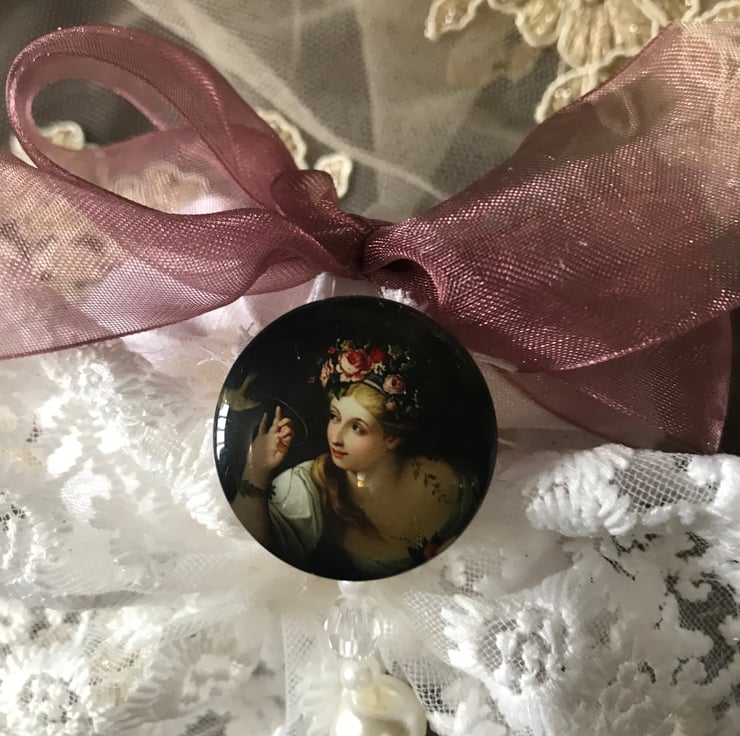 Using a vintage style look lace ,I have made a sachet ,that has cottage organic lavender. Finished with a portrait in a cameo style embellishment ,,with bow. This is boxed and comes with a gift tag ready to gift..