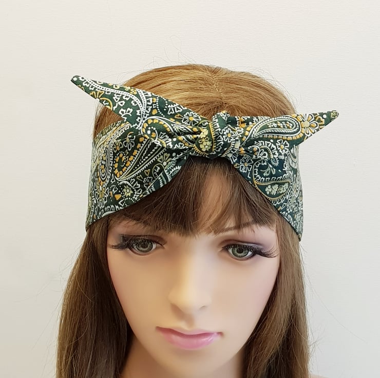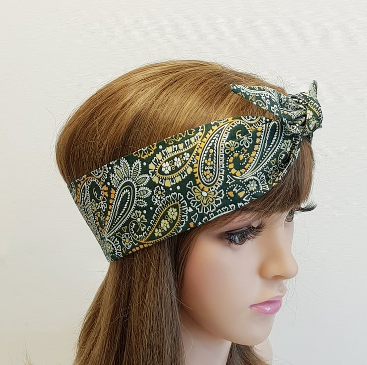 This rockabilly headband is made from printed polycotton fabric. The headband is NOT WIRED, NOT STRETCHY, UNTIED.