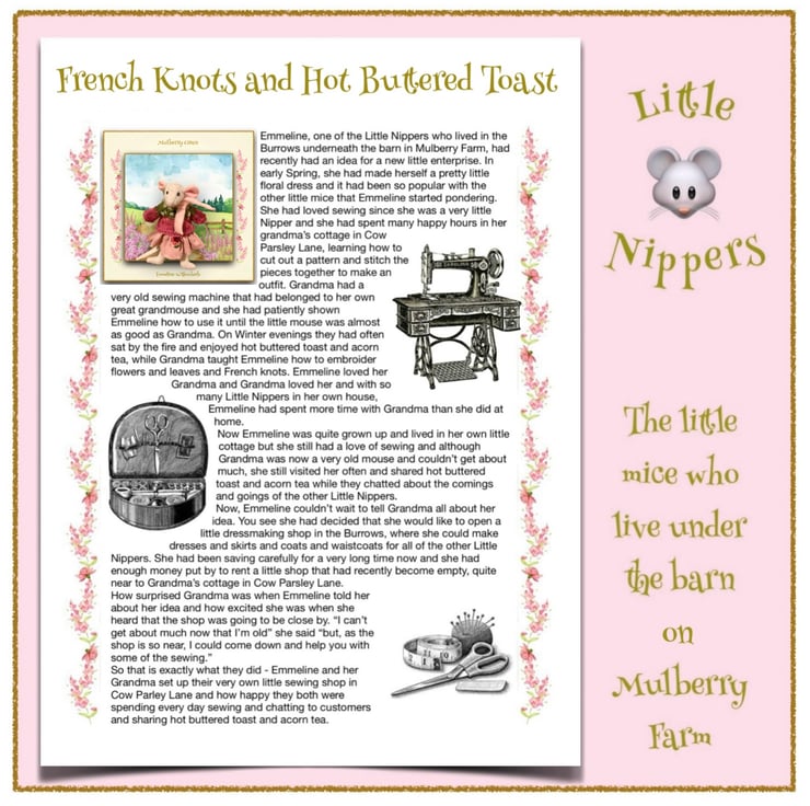 Little Nippers are a whole community of tiny wood mice, who live in a maze of little burrows and passages underneath the floor of the barn at Mulberry Farm. They are sometimes very hard to spot and Maisy and her friends rarely see them - but they are always there. The tiny mice all have their own cosy little cottages inside the burrows and work very hard in the fields, gathering seeds and berries, tiny fruits and bits of grain to take back to the burrows to be made into food. They even have their own little barn shops, where they can share the things they find in the fields and get the food they need to look after their families. They are a very happy little community who all take care of each other. There are also baby Nippers, who are called Pip Squeaks - these are very small and are not removable from their sleeping bags.