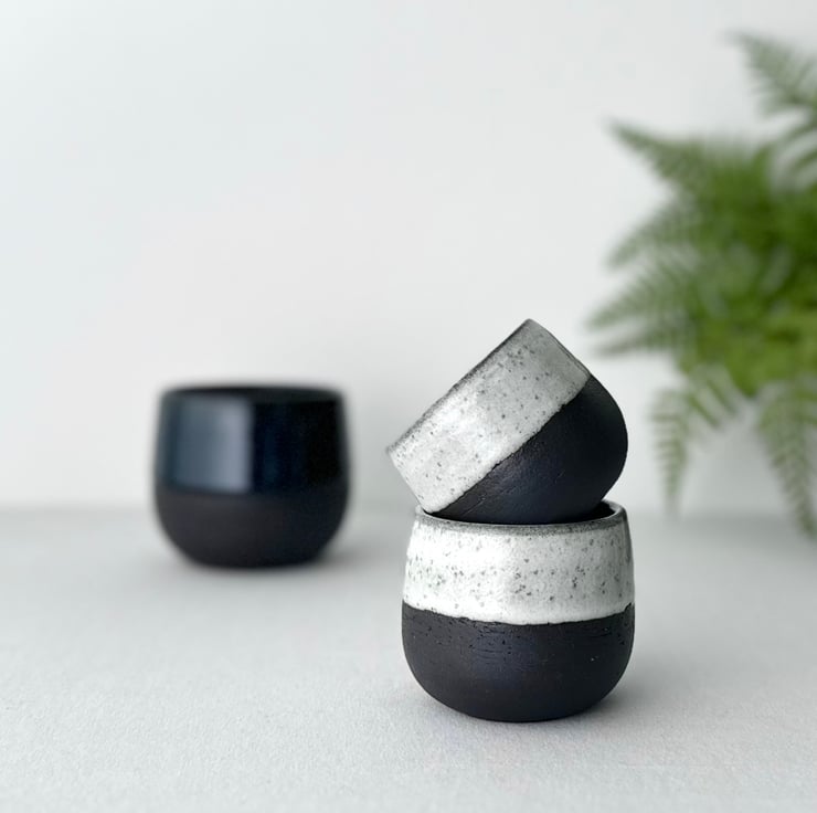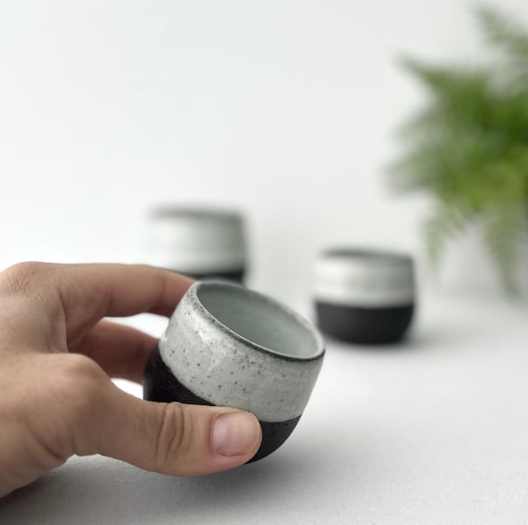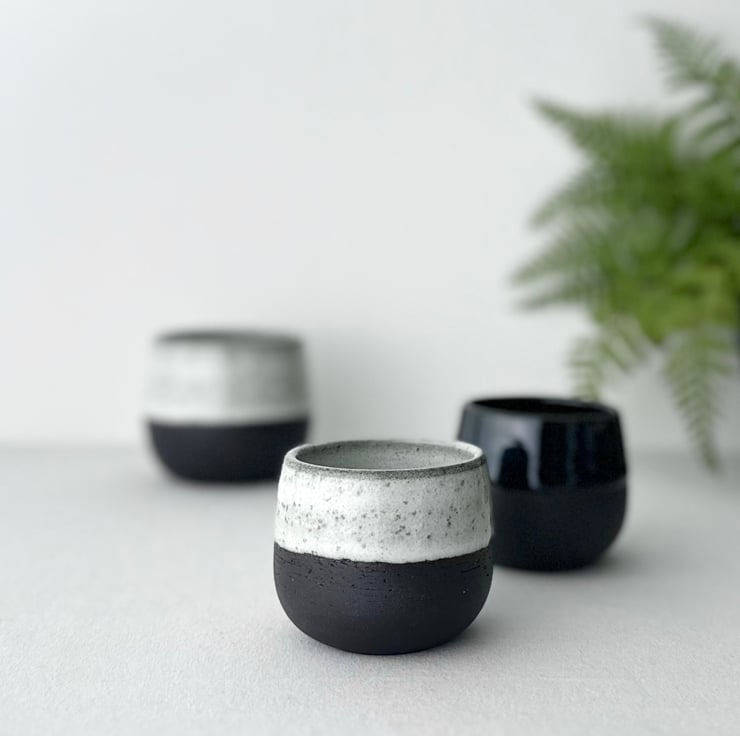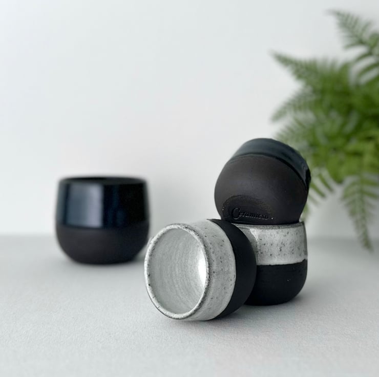 Handmade Black and White Ceramic Cup, Stoneware Stylish Coffee Mug