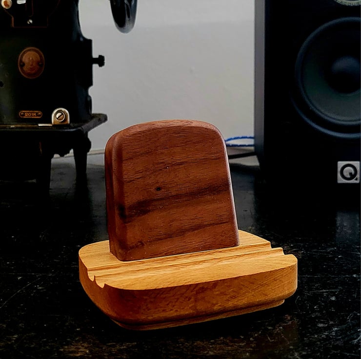 Hand crafted from selected pieces of Oak & American Black Walnut, the latest version of my Phone Stand is made to hold your mobile at the perfect angle for viewing and video calls.