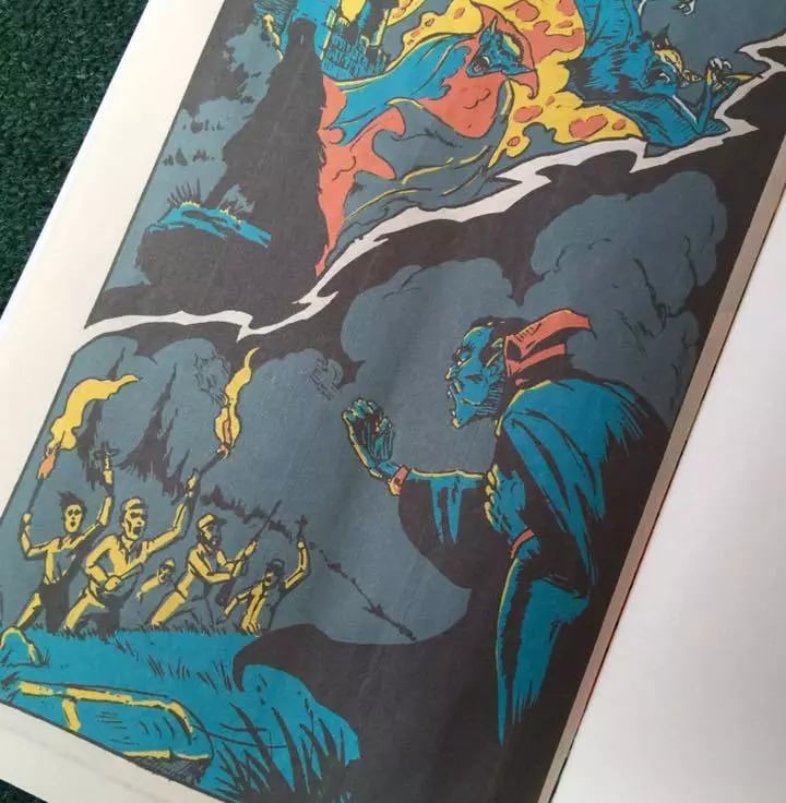 I have also managed to track down the original inner artwork which is seen in the movie and I have also redrawn this as close as possible to the original prop. There were only 2 double pages seen in the movie and this replica is as accurate as it gets. There is a bonus page which I managed to acquire from a source who owns the original black and white production artwork from the movie. I coloured this to match the other 2 pages.