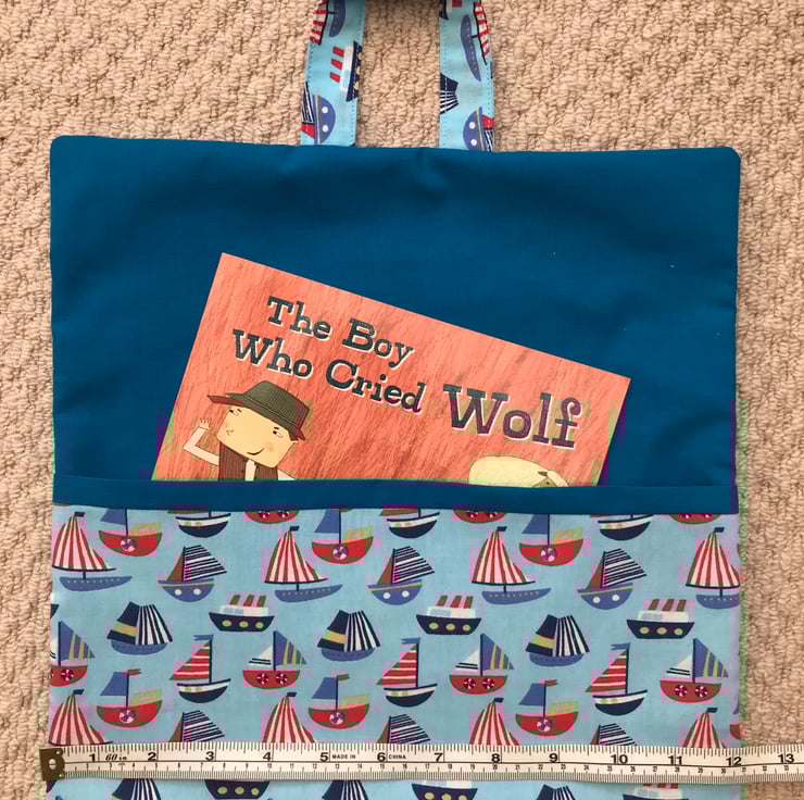 Ideal at home or when travelling. Can be used to prepare a book for bedtime or for carrying a favourite book and/or toy.