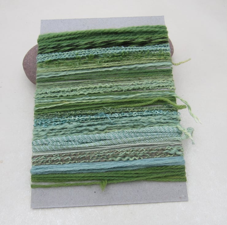 20 lengths of yarns, all approx 1m (40") long, hand dyed to a bright spring green with carefully blended natural dyestuffs.