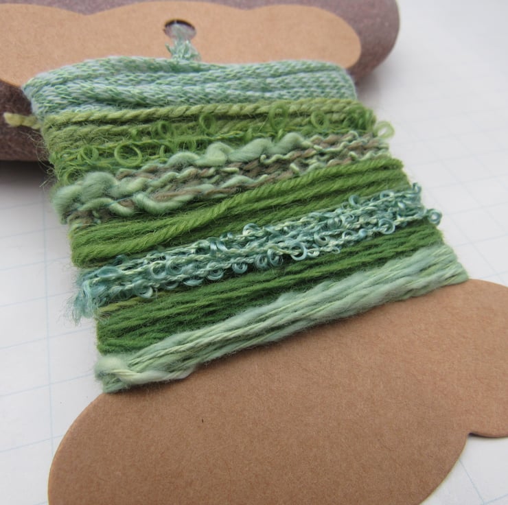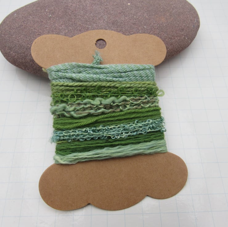10 lengths of yarns, all approx 1m (40") long, hand dyed to a bright green with carefully prepared natural dyes.