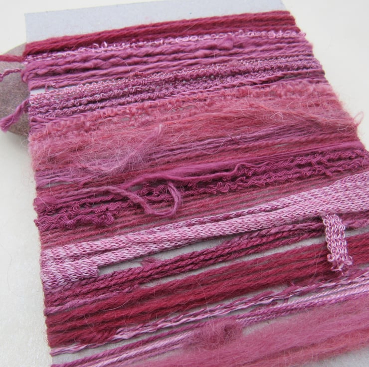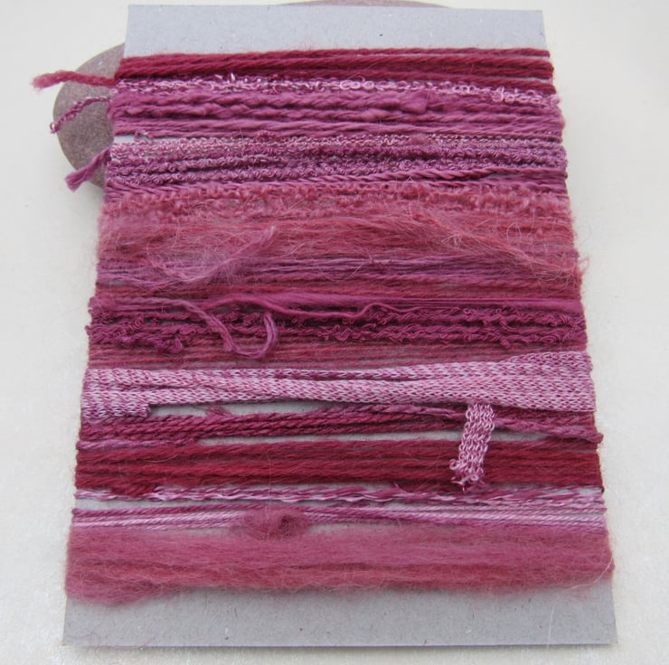 20 lengths of yarns, all approx 1m (40") long, hand dyed to crimson pinks with natural extracts of lac berries.