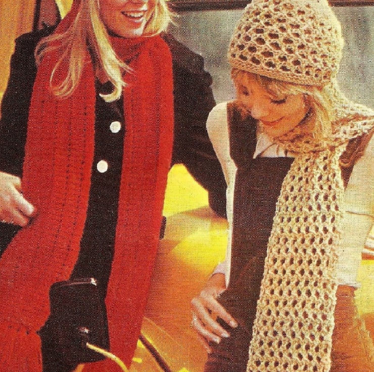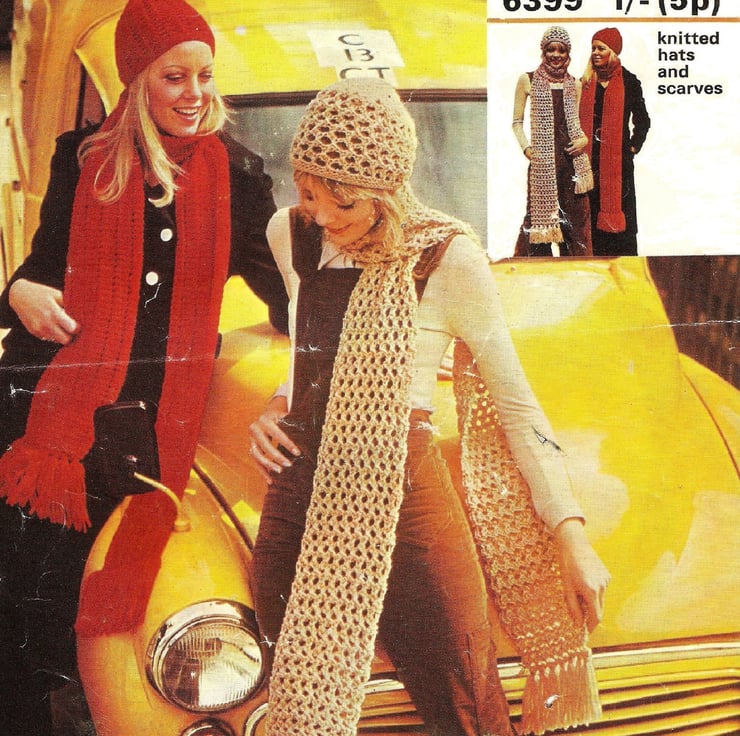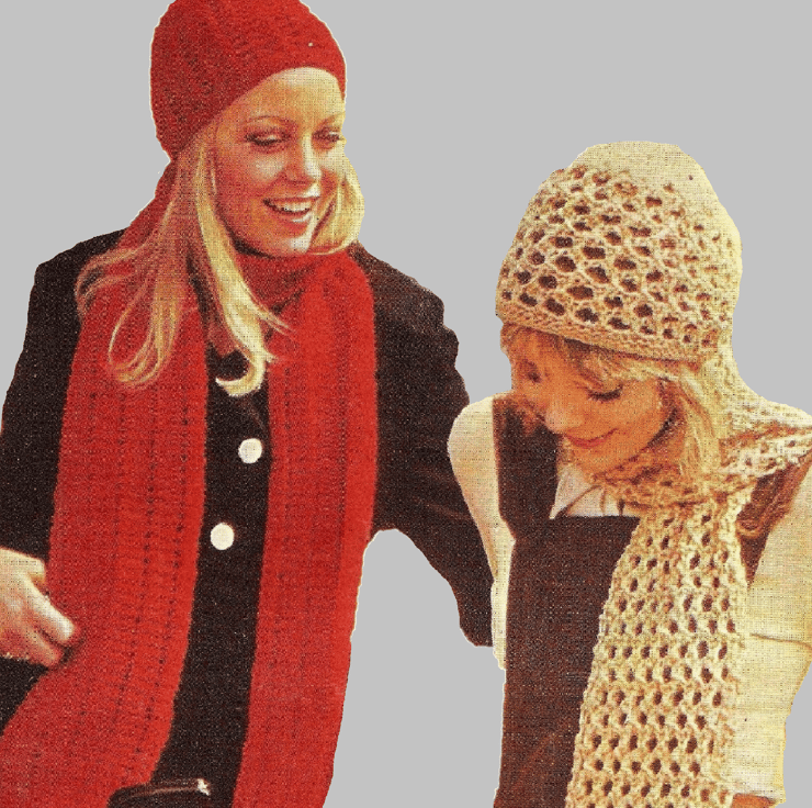 This hand knit PATTERN is for a cream hat and scarf. Knitted in chunky yarn using 4.5 mm and 6.5 mm knitting needles. There is also a red crochet hat and scarf version included.