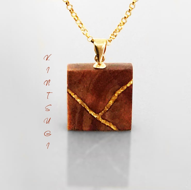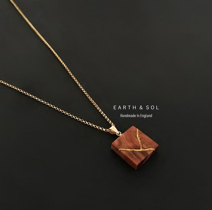 Dainty Kintsugi Necklace Made From Redwood Burl Sequoia Wood & Inlaid With a Choice of 22ct Gold, 22ct Rose Gold, Fine Silver, Copper or Crushed Gemstone.