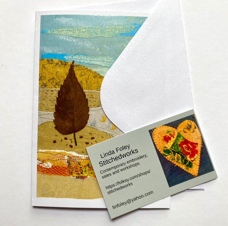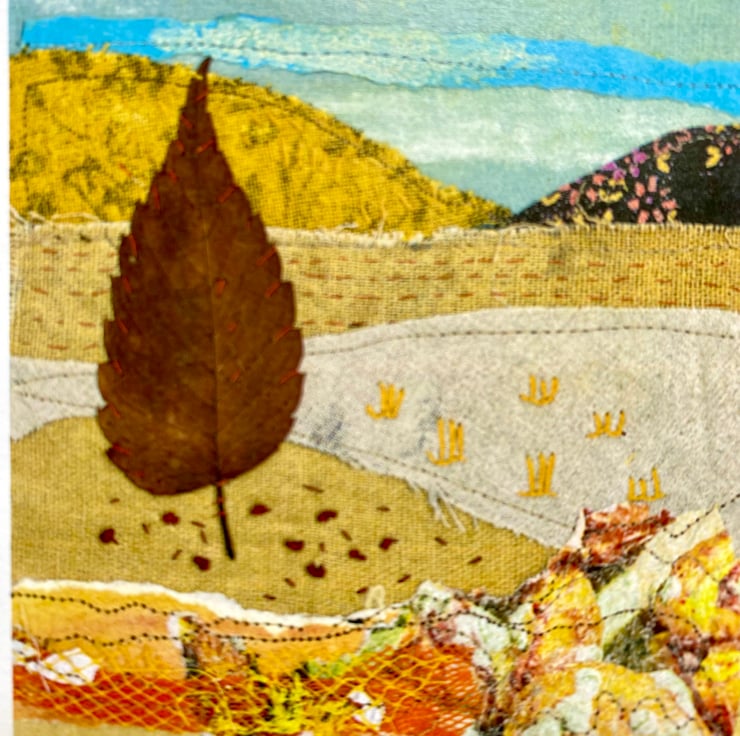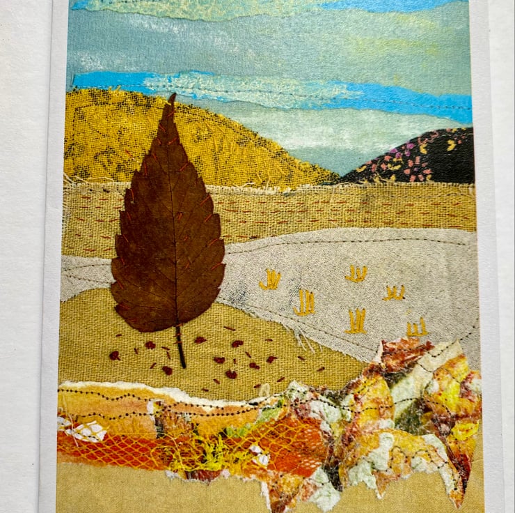 The original art work is one of my stitched textile landscapes called “ waiting for rain” . It is a comment on climate change.