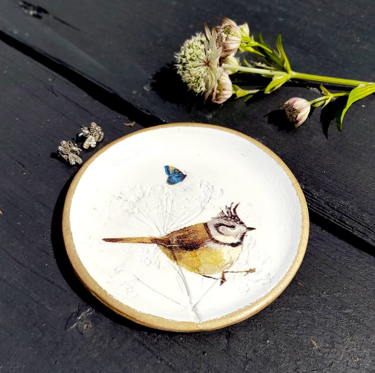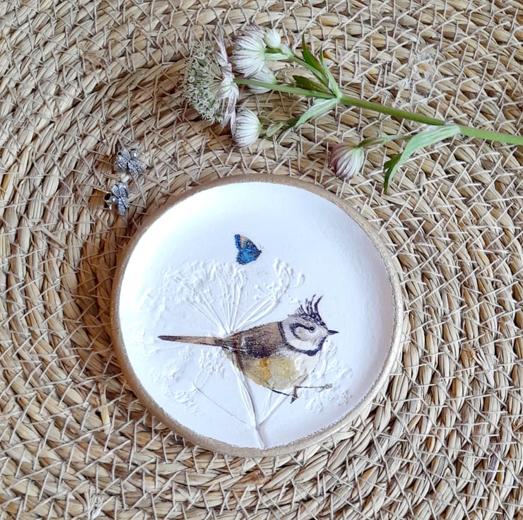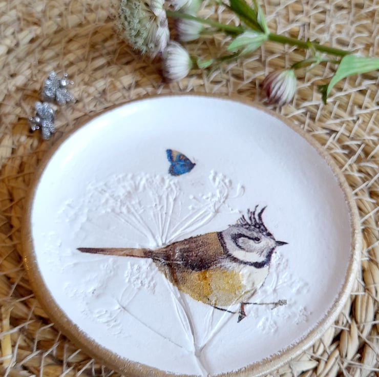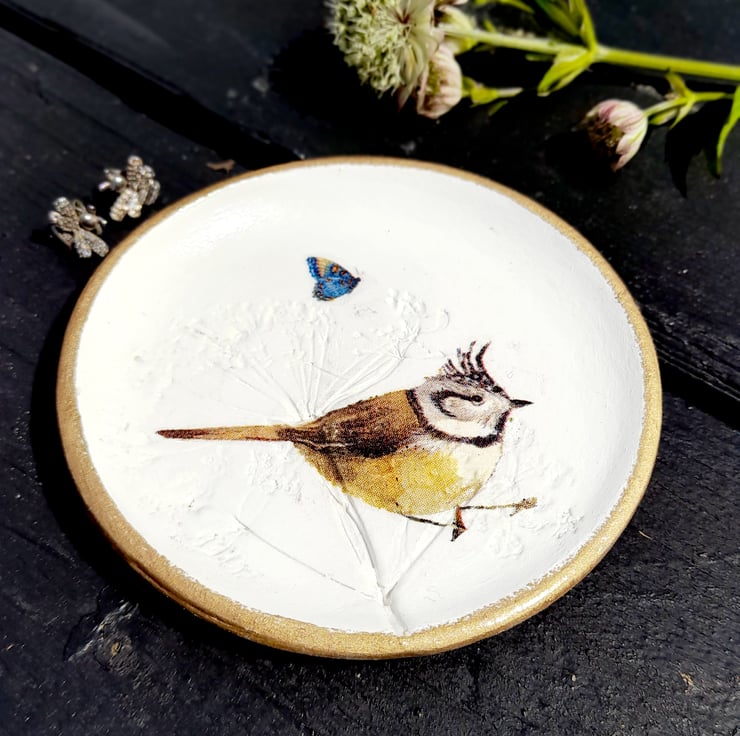 Then Decoupaged with a Crested Tit bird & a butterfly.