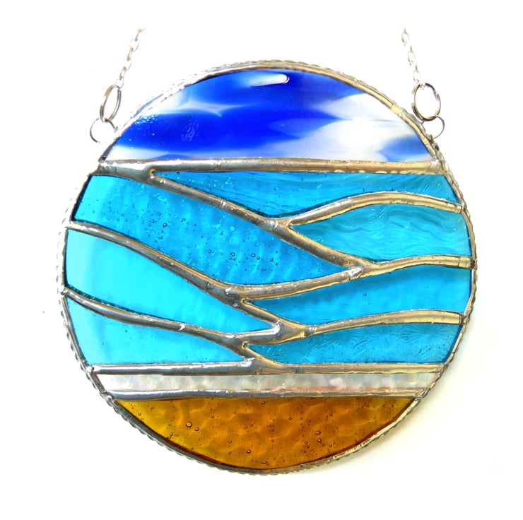 I've used 7 types of lovely turquoise glass for the waves, some textured so it has a lovely movement.