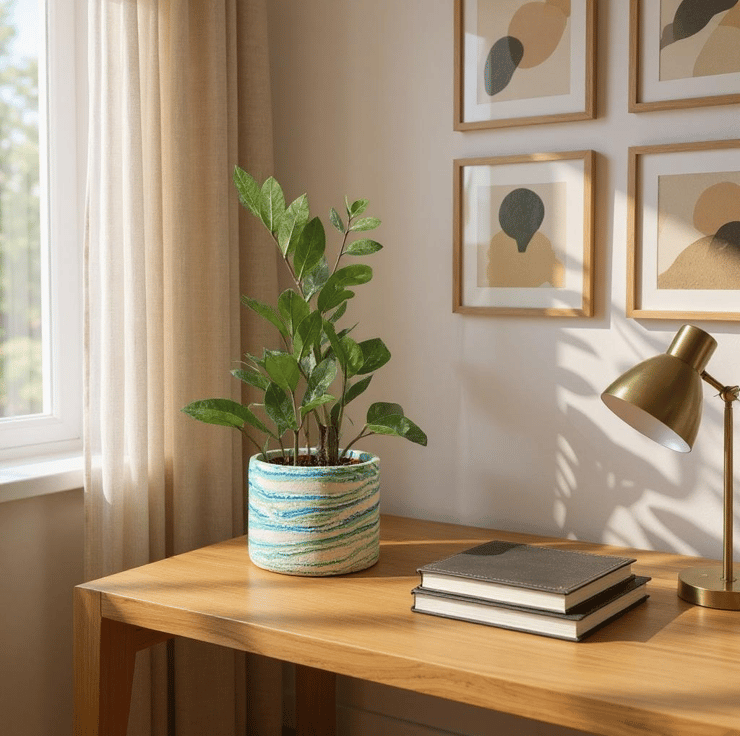 This pot is tailored for indoor use, holding a plant in a plastic nursery pot and does not have a drainage hole. Feel free to reach out for custom orders, including pots with drainage holes or different colours. Due to the handmade process, custom orders may take up to 7 days for dispatch.