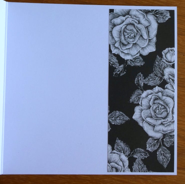 Inside the card is a strip of matching rose patterned paper down the right hand edge.