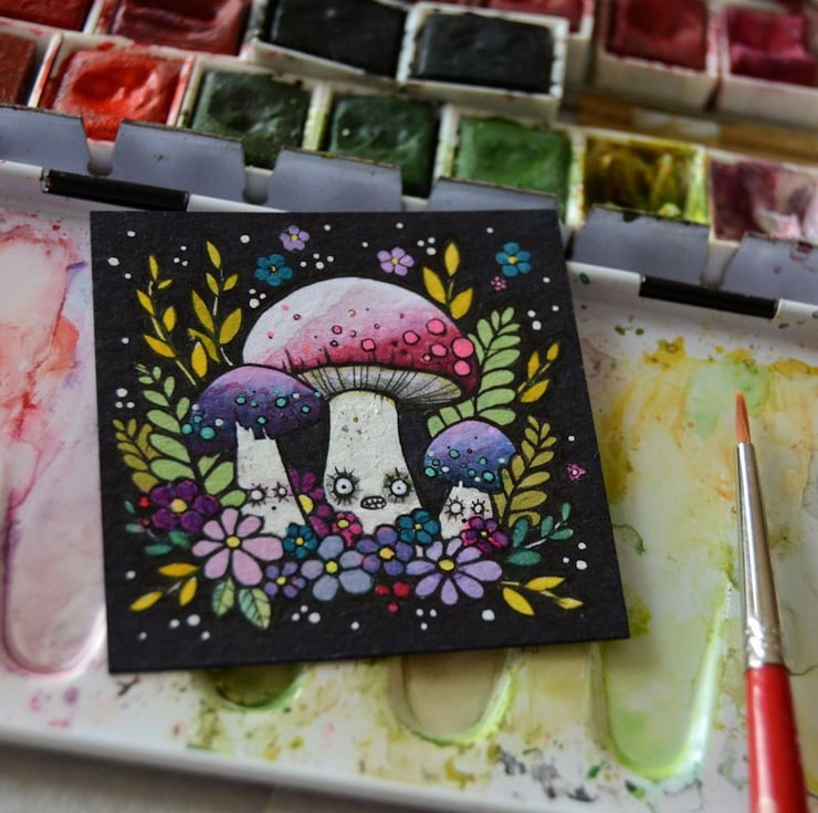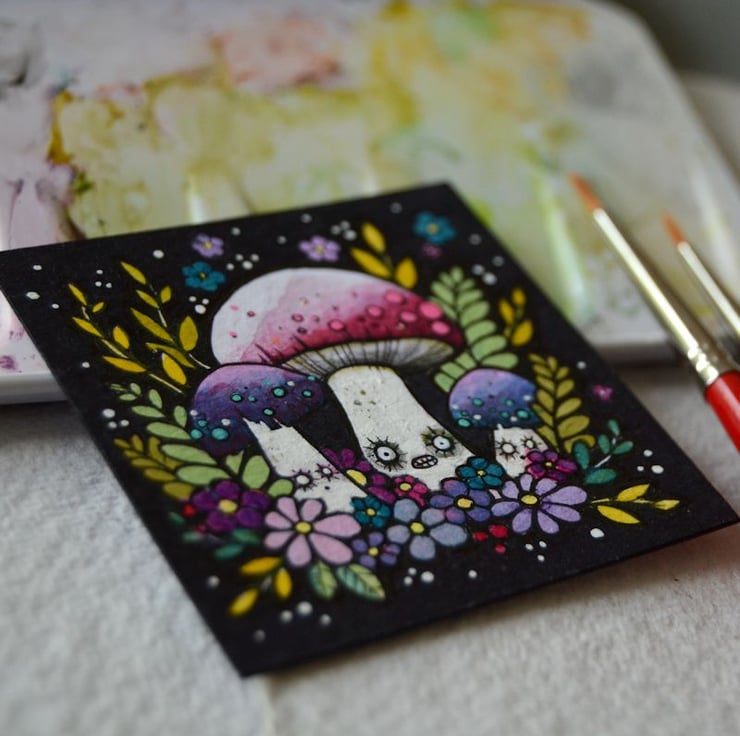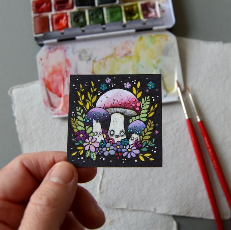 this original artwork measures exactly 2 inch x 2 inch.