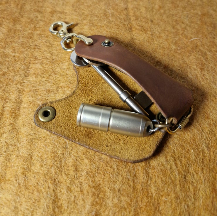 Designed to keep your keys neatly arranged, silent, and compact, this organiser fits comfortably in your pocket or bag, and can fit up to three mixed size keys. Its unisex, minimalist design makes it an elegant and practical choice for everyday carry or a thoughtful handmade gift.