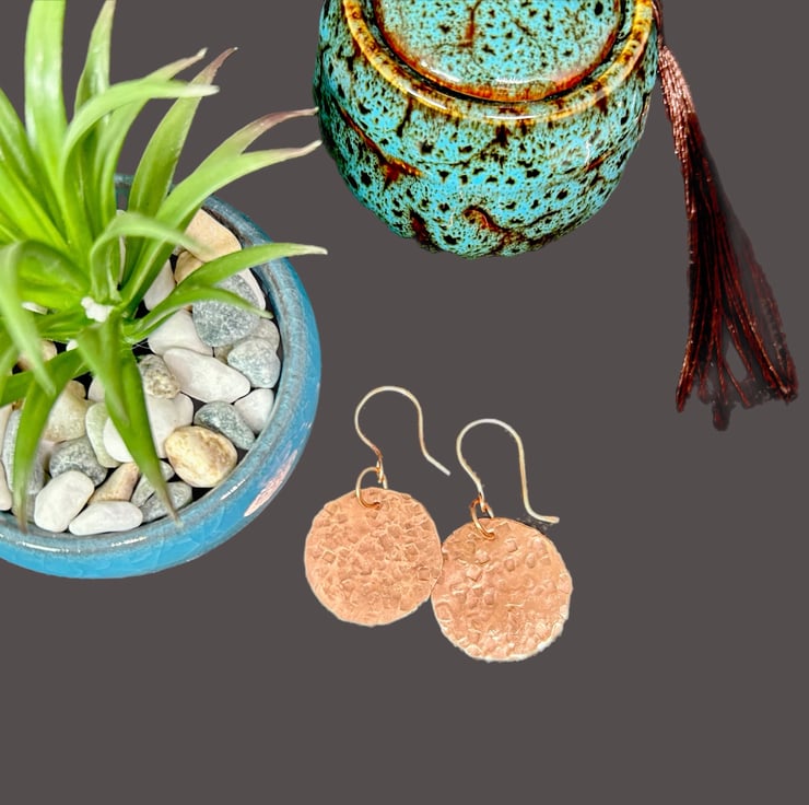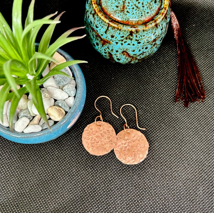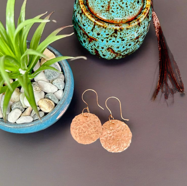 Textured Copper Disc Earrings - Gift, Birthday, Bohemian Style
