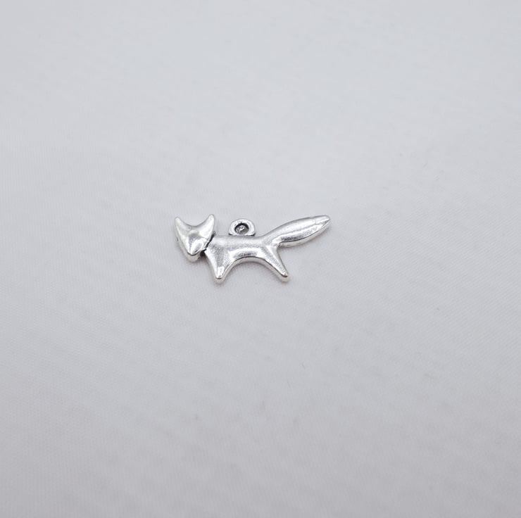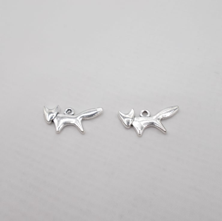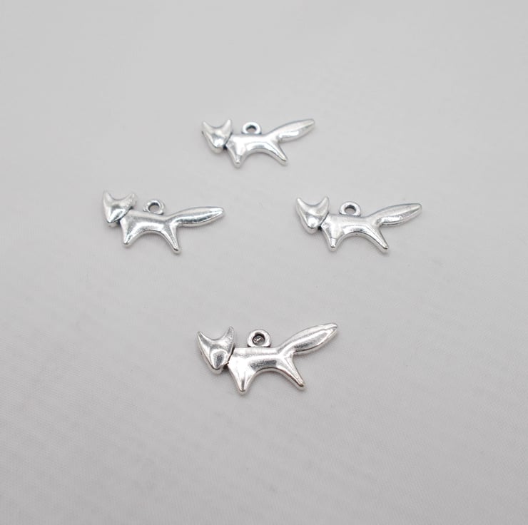 A pack of 12 antique silver tone fox charms measuring about 20x10mm. Made from zinc based metal alloy, lead and nickel safe.
