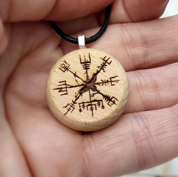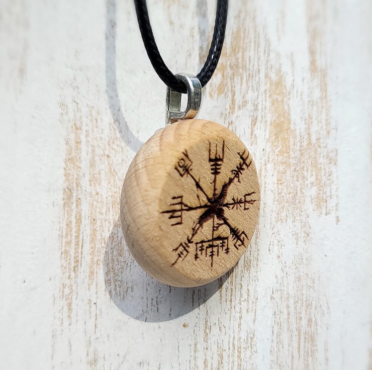 Channel ancient protection and natural grounding with this handcrafted Vegvisir and Flying Raven wooden pendant. Engraved into untreated beech wood (25mm diameter, 8mm thick), this symbolic talisman merges Viking tradition with nature’s purity.