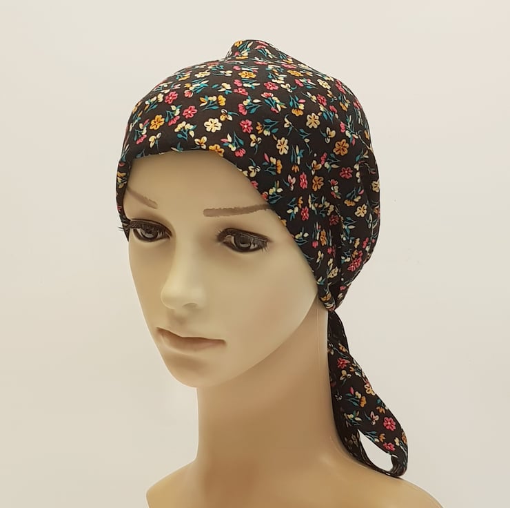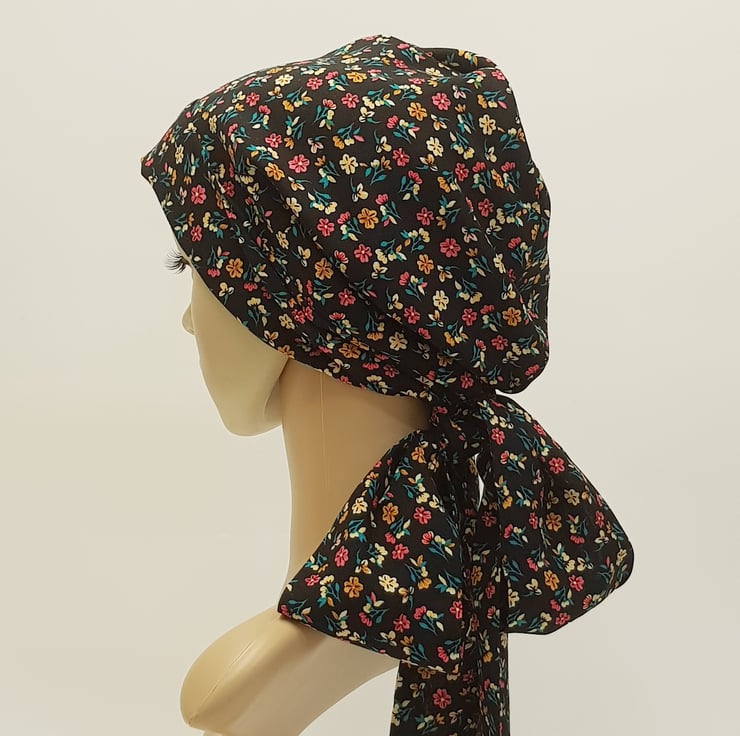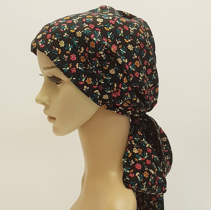 Floral head scarf, lightweight head wear for women, elegant tichel, head snood, bad hair day scarf, bonnet with long ties, headscarf.