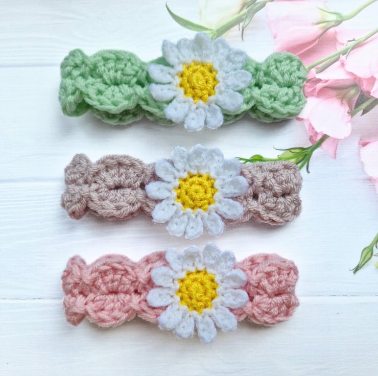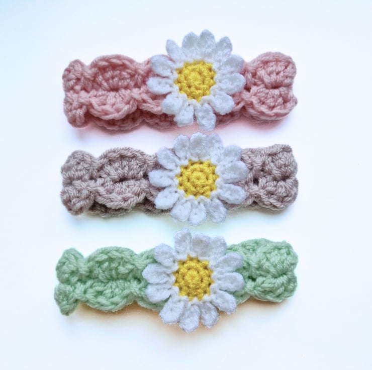 Each headband features a delicate daisy with a bright yellow centre and soft white petals, securely stitched for long-lasting wear.