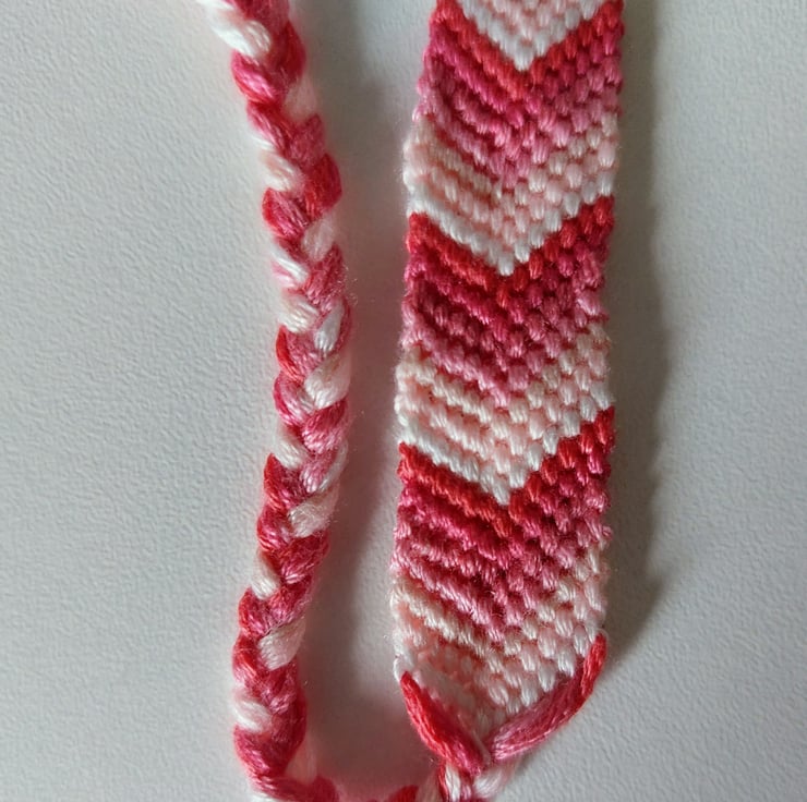 Handmade Pink Friendship Bracelet – Chevron Pattern – Adjustable Tie Bracelet