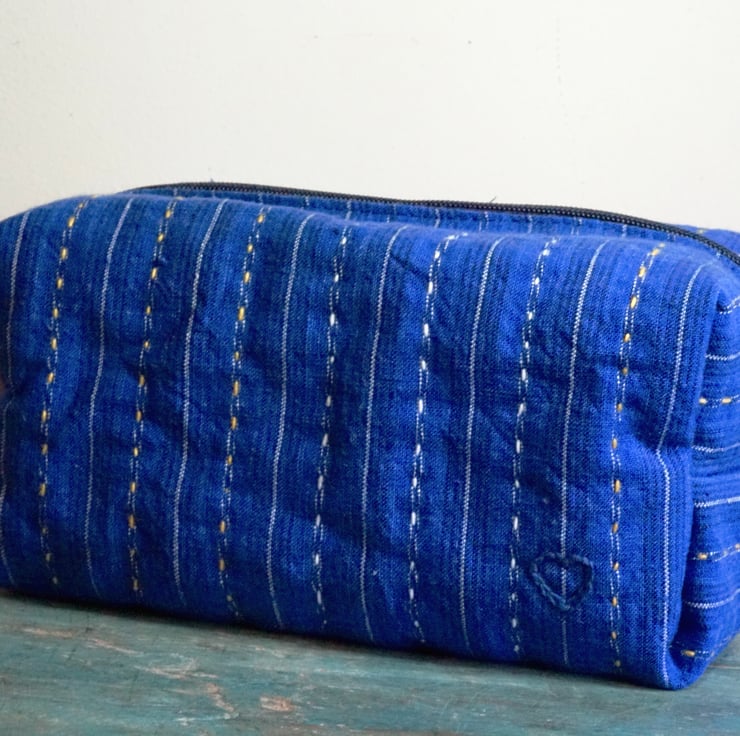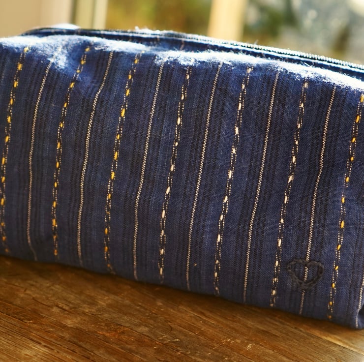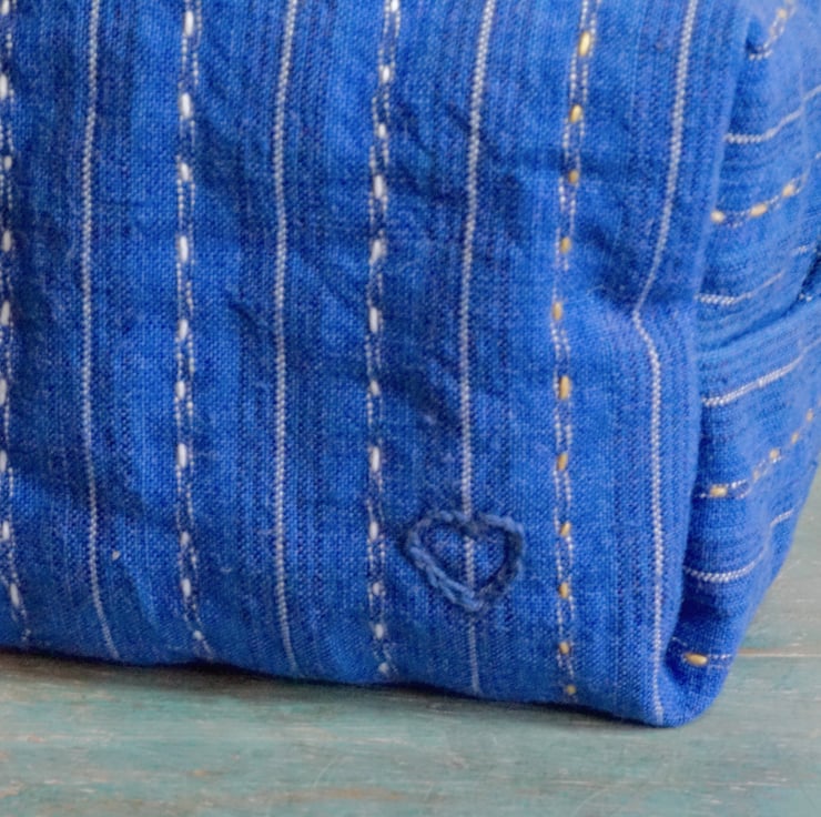 Hi, welcome to Bleu Farm! Every piece here is one-of-a-kind. The vintage cotton fabrics that I use are handwoven decades ago with natural slubs, adding a unique texture and character to each item. Small variations and imperfections are part of the charm of handmade goods, a reminder that there's beauty in simplicity.