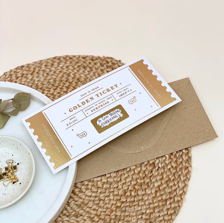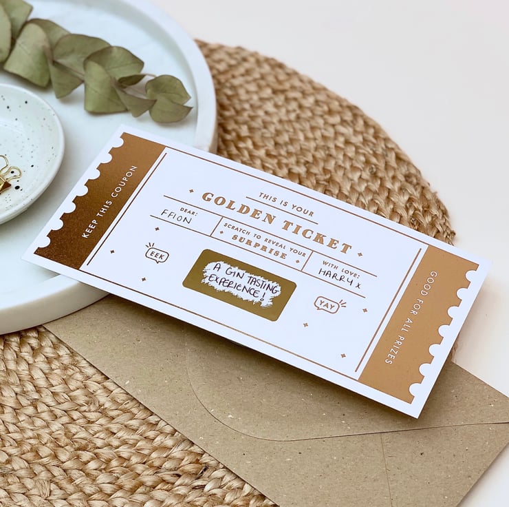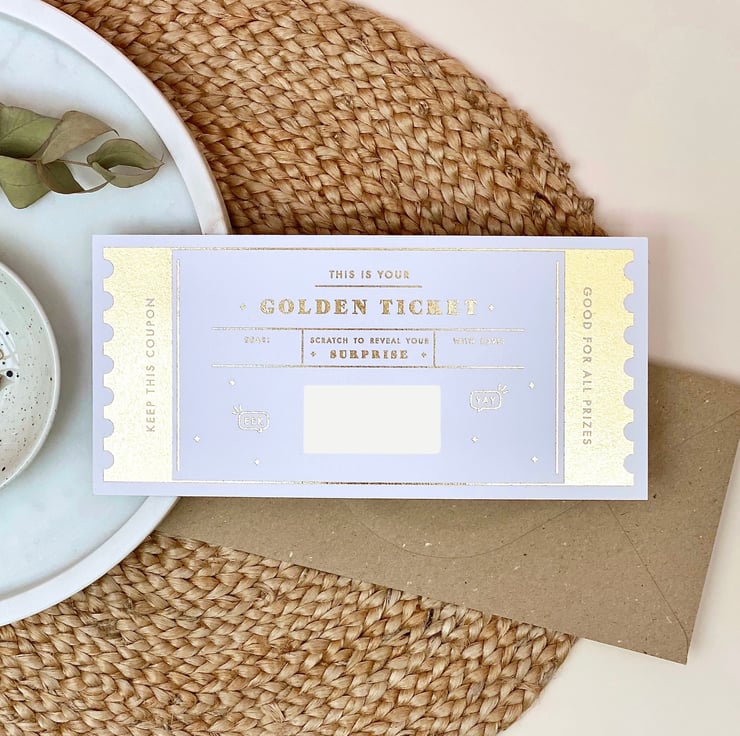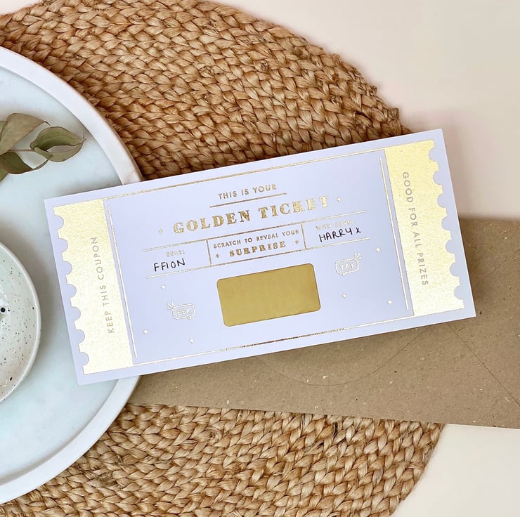 Our best seller! Surprise your loved one with this unique Golden Ticket scratch reveal card - a great way to announce any gift, whether it's a trip abroad, a spa day or even that new bag you’ve had your eyes on for ages!