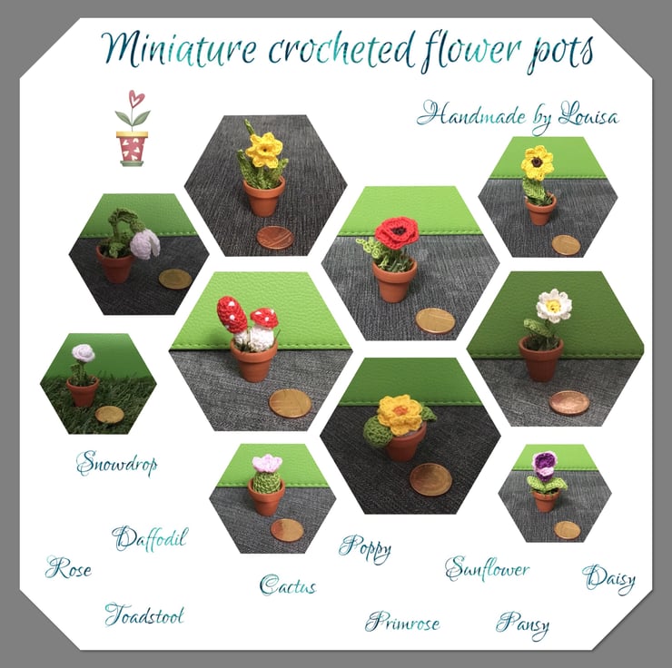I love making and designing flowers with crochet, but not everyone has space to put them so I was inspired to make a miniature range.