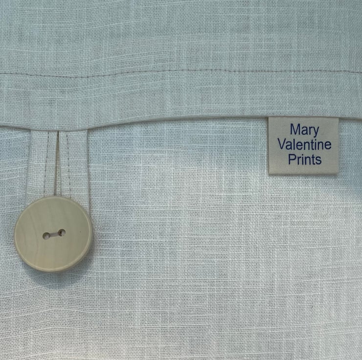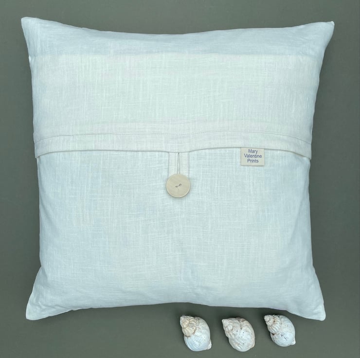 The cover is handmade from 100% linen fabric with a wooden button and loop fastening at the back.