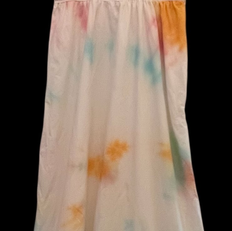 Celebrate sustainable style with this truly one-of-a-kind upcycled maxi dress. Hand tie-dyed in a vibrant multicoloured pattern, no two dresses are ever the same, making each piece a unique expression of individuality.