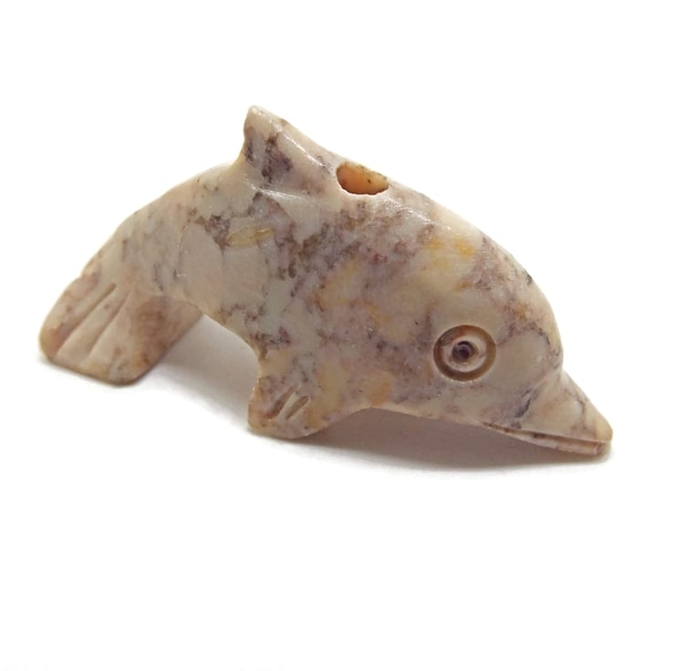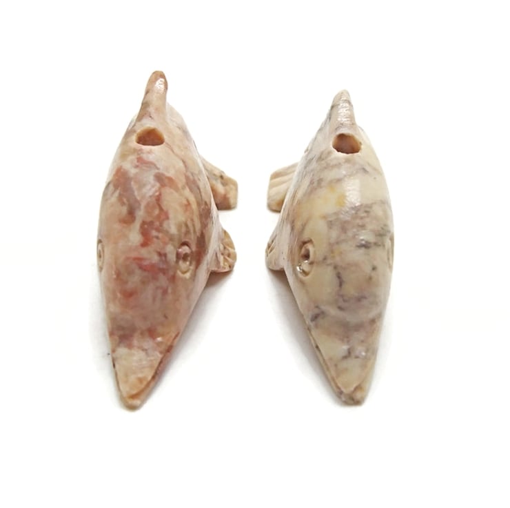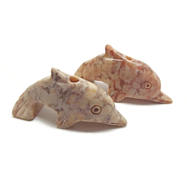 Set of 2 Carved Soapstone Dolphin Pendants in Reds, Browns, Green and Cream. Great for Sea Life Jewellery or for Home Decoration Crafts.