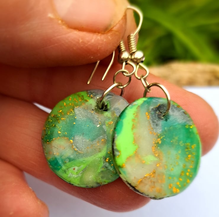 A beautiful pair of handmade polymer clay earrings.