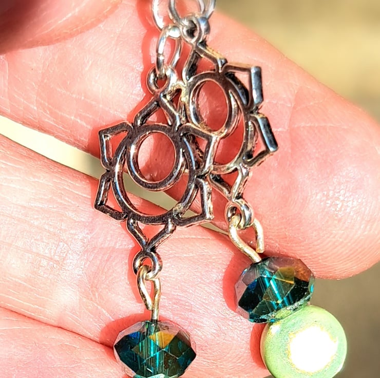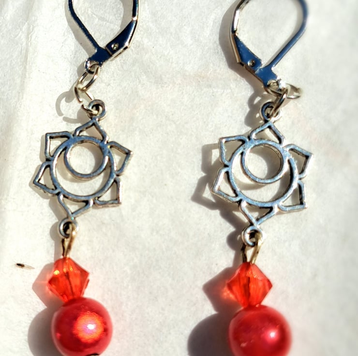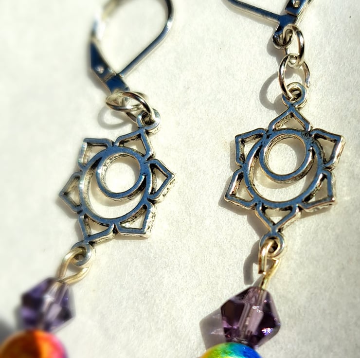 The lotus flower with a disco bead and a crystal to give it a daytime dazzle finished with a silver plated hooks.