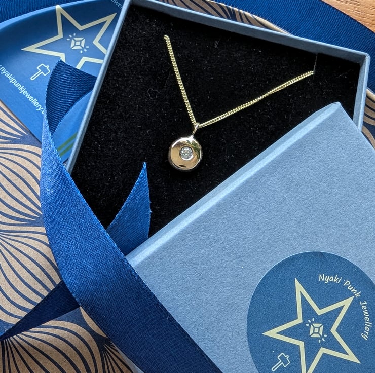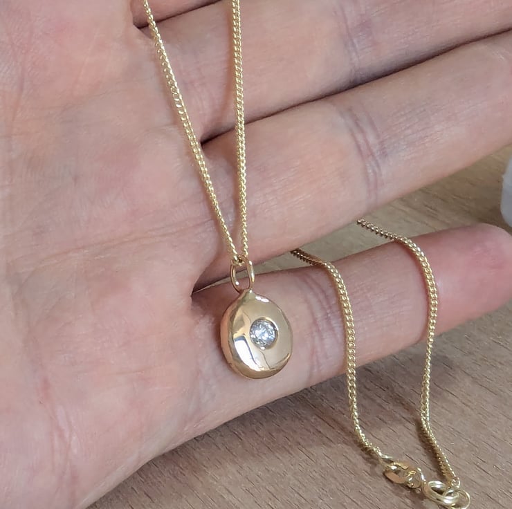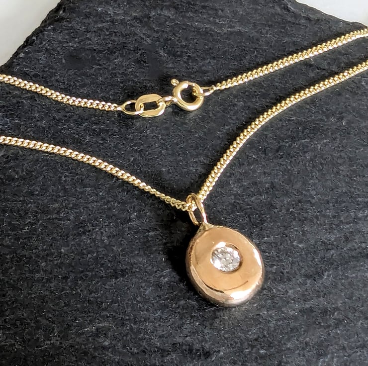 HANDMADE Solid Recycled Gold & Diamond pendant