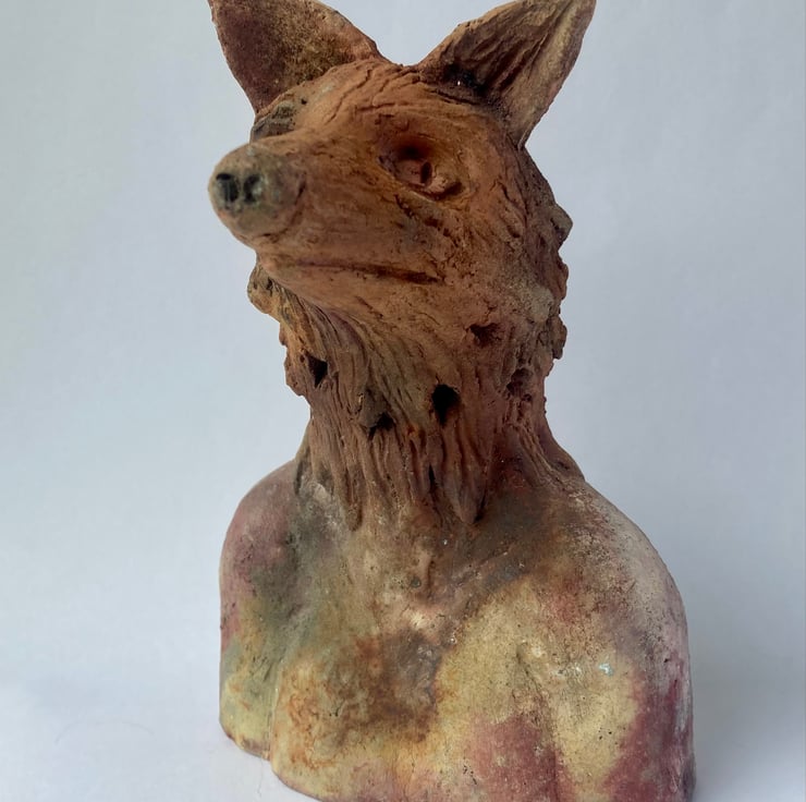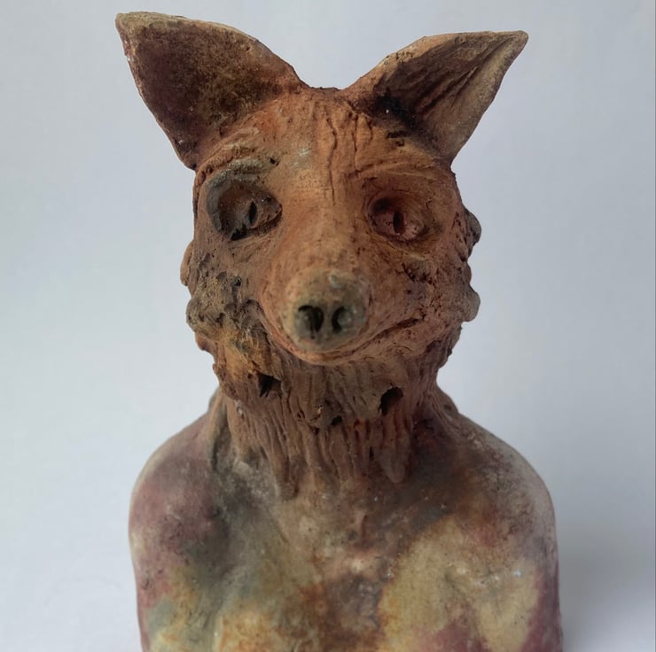 Hand made ceramic sculpture of Reynard, the fox.