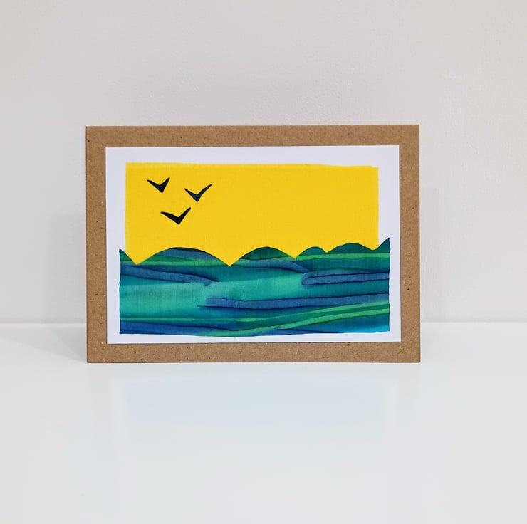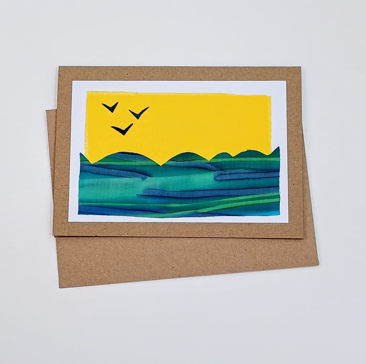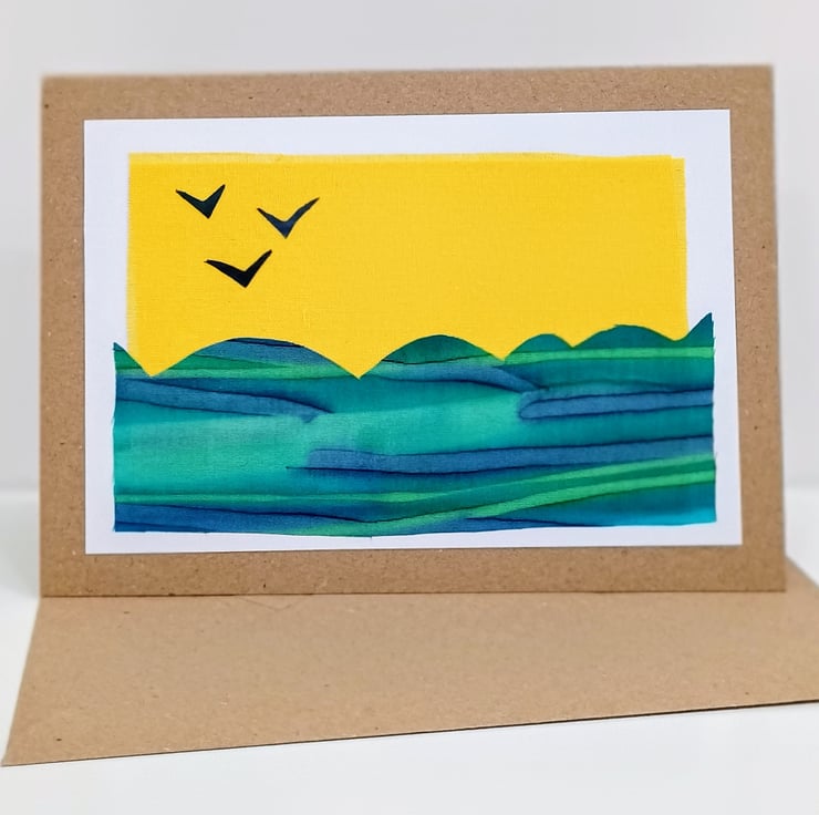 Created using vibrant cotton and batik fabrics. Sending out summer vibes, each card is handmade and therefore unique.