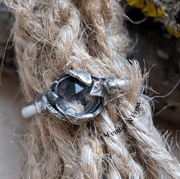 This ring will be made in your chosen size, crafted by hand in my workshop, where silver and story intertwine. No two will ever be alike, each follows its own wild rhythm, just as the ivy weaves through hidden ruins.